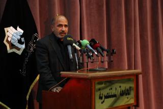در ادامه این مراسم، آقای مهندس بشیر محمد جاسم نائب رئیس هیات امنای حرم مطهر در سخنانی گفت:خداوند انبياء و رسل را هر کدام به مقتضای جامعه خویش به امری مامور و تکلیف فرمود و ائمه معصومین نیز هر کدام وظیفه و تکلیفی داشته اند و هر کدام خود مقدمه ساز امام بعد از خویش بوده اند. صحبت امروز ما در دانشگاه شما و در کنار اساتید گرانقدر و دانشجویان عزیز حول شخصیت امام زین العابدین علیه السلام است. این امام همام بعنوان فرزند امام حسین علیه السلام ادامه رو راهی است که پدر بزرگوارش در جامعه مرده آنزمان بنا نهادند. نقش امام سجاد علیه السلام شامل دو مرحله اساسی است. اول مرحله همزمانی آن حضرت با پدر بزرگوارشان امام حسین علیه السلام است آنزمان به اتفاق ایشان از مدینه به عراق مهاجرت نمودند و مرحله دوم ، همراهی ایشان با کاروان اهل بیت علیهم السلام و بیان حقایق اهل بیت و رسوا نمودن بنی امیه در طول مسیر از کربلا به کوفه و سپس شام می باشد. در این مرحله، امام سجاد علیه السلام رسالت و پیام نهضت پدر و مظلومیت ایشان را به آن جامعه جاهل و خفته رساندند.