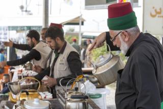 6- استقبال الزائرين في مداخل مجمّعات الزائرين المنتشرة على الطرقات الخارجيّة المؤدّية الى مدينة كربلاء المقدّسة.