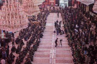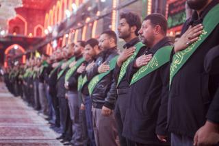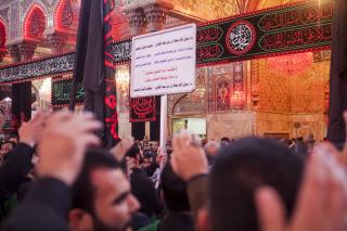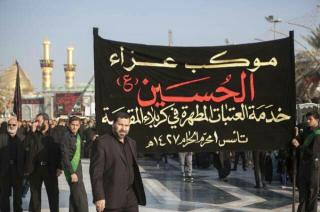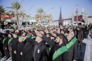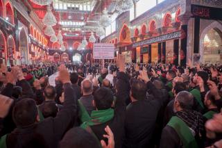 Les fidèles sont partis de la cour du saint sanctuaire d'Abbas (p) vers le saint tombeau, passant par la zone de l'Entre al-Haramayne, et enfin le saint tombeau de l'Imam Hossein (p) et revivre les souvenirs du martyre du Messager paix et prières soient sur lui et sa famille en lisant des poésies rappelant l'histoire douloureuse qu'ont vécu le Prophète et sa famille (p).