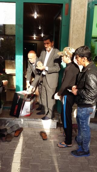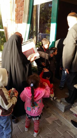 “Program Mukaddes Türbe’nin imkanları çerçevesinde sürekli bir biçimde devam etmektedir. Ancak buna karşın (sunulan yardımlar) sığınmacı ailelerin içinde bulunduğu şartlar ve özellikle de zorlu iklim şartları ve düşük hava sıcaklığı sebebiyle yaşadıkları sıkıntıların büyüklüğü ile denk değil. Komite elektriğin neredeyse istikrarlı denebilecek bir şekilde gelmesi ve memleketmizdeki zorlu kış şartları sebebiyle girişimde bulunarak elektrikli soba ve kışlık giysi dağıtımında bulunmuştur.”