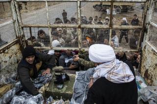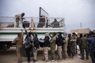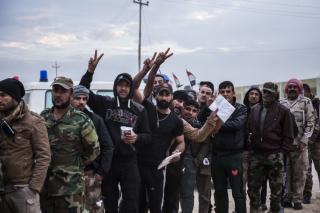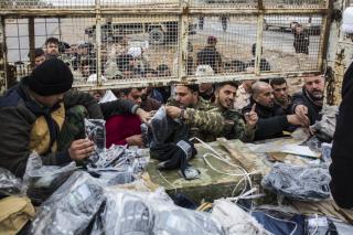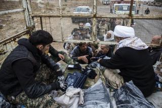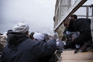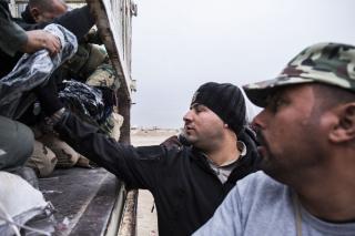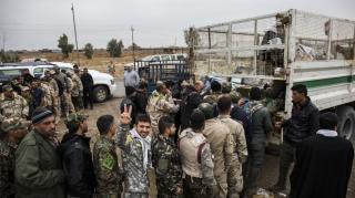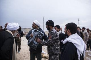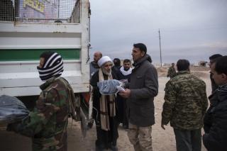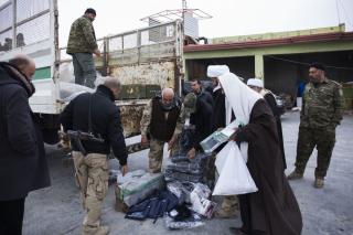Explaining: "These materials have been deliverd to the fighters from the funds boxes scatterd in the holy shrine of Aba Al-Fadl Al-Abbas (peace be upon him) and its surrounding areas and in the area between the two holy shrines for the support of the popular mobilization under the supervision of the department of religious affairs at the holy shrine, and the visitors' donations were allocated to the martyrs and wounded of the popular mobilization and the security forces, as well as to send aids to all operations' districts. The convoy has included various food aid and winter clothes because of the harsh weather circumstances, and this is what they need at the moment because of the severe shortage in this side."