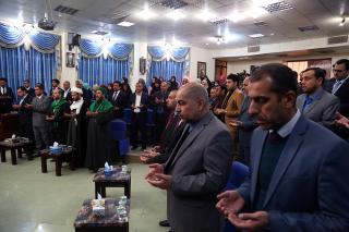 حفلُ التكريم الذي احتضنته قاعةُ كليّة العلوم في الجامعة المذكورة شهد حضوراً واسعاً من قبل أساتذتها وطلبتها تقدّمهم رئيسُها الأستاذ الدكتور حسن عودة الغانمي ووفدٌ مثّل العتبة العبّاسية المقدّسة استُهِلَّ بتلاوة آياتٍ من الذكر الحكيم والاستماع وقوفاً للنشيد الوطني وأنشودة العتبة المقدّسة (لحن الإباء) وقراءة سورة الفاتحة ترحّماً على أرواح شهداء العراق.