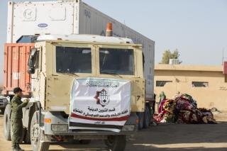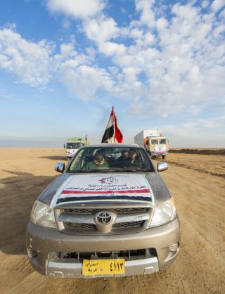 رئیس هیات اعزامی حرم مطهر به مناطق عملیاتی آقای شیخ حیدر العارضی در گفتگو با خبرنگار شبکه الکفیل ضمن اشاره به ارسال مستمر کمکهای لجستیکی حرم مطهر به مناطق عملیاتی پس از صدور فتوای جهاد کفائی مرجعیت اعلای جهان تشیع گفت: این قافله به مناطق آزاد شده در اطراف شهر موصل اعزام شده تا کمکهای این قافله را که شامل مایحتاج ضروری رزمندگان از قبیل پتو، کت، پانچو، دست کش، کلاه و ... که در سرمای شدید هوا در آن مناطق مورد نیاز بوده و از سوی دفتر مرجعیت اعلای جهان تشیع حضرت آیت الله العظمی سیستانی () دام ظله) تهیه شده اند را به دست رزمندگان و مجاهدان برساند.