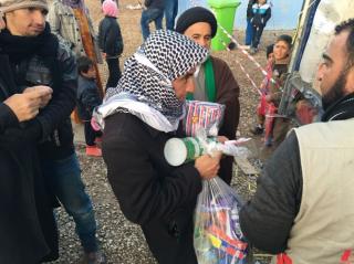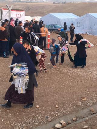 ((السيد السيستاني ما دام لم ينسَنا فلن ننساه من الدعاء..)) هذا ما بيّنه نازحو مخيّم حسن شامي الواقع قرب نهر الخازر في ناحية حسن شامي الذي يضمّ (2,500) عائلة نازحة من الموصل بواقع عشرة آلاف نسمة، حيث تمّت إغاثتهم بـ(2,500) سلّة غذائية وحليب أطفال رضّع وملابس أطفال بمختلف الأحجام وملابس نساء ونحو (3,500) صندوق ماء فكانت مشاعرُهم مفعمةً بالشكر والتقدير لمقام المرجعيّة الدينيّة العُليا.