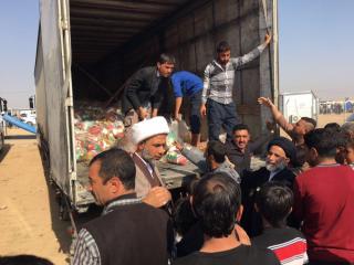 رغم كلّ الظروف الجويّة والأمنيّة فإنّ لجنة الإغاثة التابعة لمكتب سماحة المرجع الدينيّ الأعلى آية الله السيد علي الحسينيّ السيستانيّ(دام ظلّه) متواصلة مع العوائل النازحة من محافظة الموصل أو من قضاء الحويجة التي فرّت من بطش عصابات داعش الإرهابيّة، فقوافل المساعدات مستمرّة ضمن جدولٍ زمنيّ ومكانيّ معدّ مسبقاً سواءً كانت لمخيّمات النازحين أو للمدن المحرّرة، وقد كثّفت اللجنة عملها خلال هذه الفترة نتيجةً لتزايد حالات النزوح وتردّي أحوال النازحين، فكانت هذه اللّجنة متواجدة بينهم لتمدّهم وتمدّ يد العون لهم ضمن إمكانيّاتها المتاحة التي سخرتها لهذا العمل الإنسانيّ.