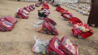 ((رسالتنا للسيّد السيستاني هي: لكم الأجر والثواب، وجزاكم الله خير الجزاء، يا ظلّنا وعزّنا ونخوتنا، اللهمّ ربّي يحفظكم، والله والله كلّ عائلة ترفع يديها الى العزيز الحكيم وتدعو لكم بالتوفيق والصحّة، ربّي ينصركم ويحفظكم)) هذا ما بيّنه نازحو الحويجة في قرية ربيضة وقرية سمرة وقسم من النازحين الساكنين في الهياكل في تكريت، حيث تضمّنت المساعدات (1,500) سلّة غذائيّة و(2,280) بطانية وحليب أطفال رضّع، إضافةً الى نازحي تل عبطة في مخيّم المدرج التابع الى ناحية القيّارة الذي تقطنه نحو ألف عائلة، حيث تمّ توزيع كميّة كبيرة من الأغطية –البطانيات- على هذه العوائل.