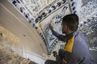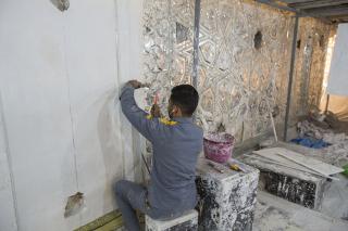 He added: "The works have included as usual, the removal of the damaged mirrors and treating the walls' cracks and then arming it with BRC then covering with the mixture of fiber and plaster, to become a in a stronger form and ready to plan carvings for the mirrors on it. As for the recently established lighting in form of a star, there was some changes made through making the surrounding frame in aluminium to be stronger and more beautiful after it was made out of iron."