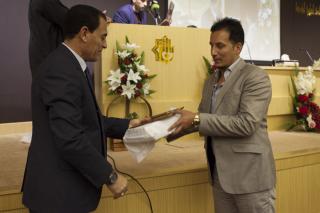 Followed by the word of Sayed Mohamad al-'Arabi the representative of the delegation and in which he said: "The Almighty God has honoured the humanity with the knowledge and made it a light to guide us..."