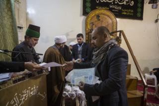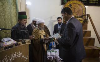 Mukaddes Türbe heyeti Şeyh Macid Sultanî eşliğinde Irak’ın Babil eyaletindeki Şomelî kazasındaki şehitlerin yakınlarını ziyaret etti.