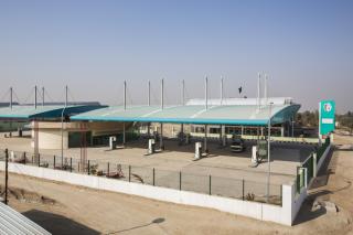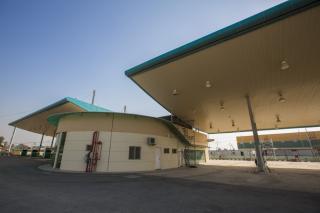- 1- Section (A), dedicated to the project's administration, and contains meeting rooms, cars parking, health facilities and a cafeteria, as well as halls and other service rooms such as the room of control (for the electric, warning, fire.. systems), and it is built in three floors. Its completion rate is of 75 %. This section includes also a gas station that is in the phase of final examinations, and it has been running during the last Ziyarat Arba'een for experimenting it, its capacity of one million and seventy-three thousand litres of fuel (petrol and diesel) by 29 reservoirs, each of them has the capacity of 37 thousand litres. This gas station includes also an administration building and private control rooms.