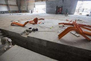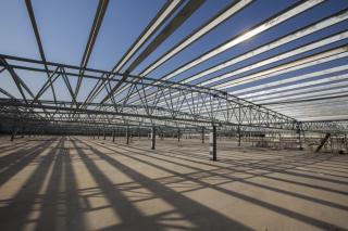 - 5- Section (E), a machines' garage on two floors, the first floor is for the large camions, and the second floor for smaller ones. Its capacity is of 225 vehicles and its completion percentage is of 70%.