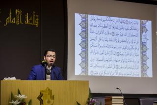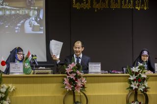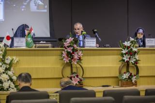 Suivi par le mot de l'Université de Bagdad, prononcé par son président le Prof. Dr. Alaa Abdul Hussein Abd Al-Rasul, dans lequel il a déclaré que le rôle des savants religieux d'interagir avec les universitaires est un événement fondamental qui est de lier les méthodes Islamiques aux sciences, et que la participation des invités japonais est de se rassembler autour d'une plus grande identité qui est l'identité humaine préconisée par l'Islam.