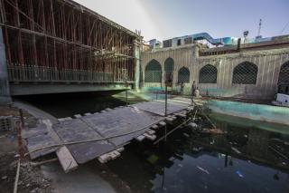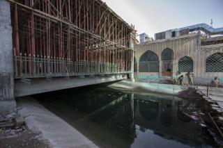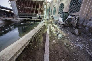 The Head of Engineering Projects Department at the Al-Abbas's (p) holy shrine; Engineer Dea' Majeed Al-Sa'egh has explained to Al-Kafeel Network, which has a field tour in this project: "The project was referred to the Iraqi company Ard Al-Quds, which did not spare no effort to accomplish the project's phases, and recently one of its part was completed after fixing the concrete pillars on either side of Hussaynia River, as the expansion will include covering the river and building the expansion on it. first concrete bridges were put to be the floor of the project, then concrete pillars linked to the poles on either sides of the river, then started the roofing works which will be completed in the coming days, to proceed with the civil works for this part."