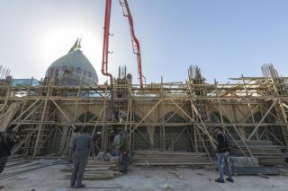Under the direct field supervision of the Engineering Projects Department at the Al-Abbas's (p) holy shrine, the technical and engineering staff working in the expansion project of the Maqam of Imam Al-Mahdi (may Allah hasten his holy reappearance), continue the works according to the time and technical plans prepared for it and depending to the special designs, which was characterized by the urban harmony of the Maqam as a whole, and of the Islamic heritage in general.