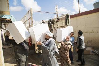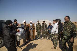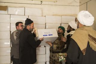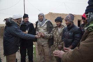 Le responsable du comité de visite Cheikh Haydar Al-‘Aridi du département des affaires religieuses a exprimé au réseau Al-Kafeel ce qui suit : « Depuis le lancement de la Fatwa et suivant les recommandations du haut responsable du sanctuaire saint Sayeed Ahmad As-Safi, le sanctuaire saint Al-Abbas poursuit son soutien et ses visites aux forces combattantes dans les premières lignes, et ce convoie est un cadeau de l’autorité religieuse suprême son éminence Sayeed Ali Al-Husseini AlSistani (Longue vie à lui), qui comprend la distribution de nombreux produits essentiels à des milliers de combattants, comme des couvertures, des vêtements, vêtements de pluie et des gants, casques et autres fournitures, en particulier avec le temps froid que connait la ville de Mossoul en plus de repas équilibrer. »