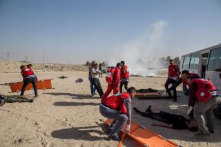 At the end of the course, there was a live practice in cooperation of the Iraqi Red Crescent Society in order to apply all the information learned by the participants during the training course.