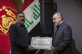 The ceremony which was attended by large crowd headed by the senior official of the Al-Abbas's (p) holy shrine; his eminence Sayed Ahmed al-Safi, was held at the Hall of Imam al-Hassan (peace be upon him) for conferences and seminars and started with the recitation of verses of the Holy Quran and reading the Fatiha in memory of the martyrs Iraq followed by the national anthem and the anthem of the Al-Abbas's (p) holy shrine.