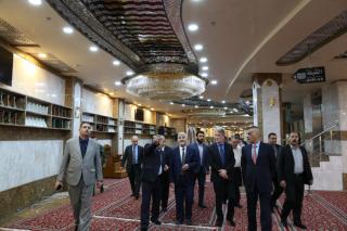 استقبل الوفد الذي ترأّسه رئيس لجنة دعم البرامج الإصلاحيّة للرئيس الروسيّ بوتين أندريه إيكوروف ورافقه وفدٌ صينيّ تمثّل برئيس لجنة الاستثمار الصينيّة مع روسيا كولدن ني، مديرُ مكتب المتولّي الشرعيّ للعتبة العبّاسية المقدّسة الحاج جواد الحسناوي الذي قدّم للوفد بعد الترحيب به شرحاً مبسّطاً وتوضيحيّاً عن بعض مشاريع العتبة المقدّسة على مختلف الصعد العمرانيّة والاستثماريّة والفكريّة وغيرها، بعدها اصطحب الوفد بجولة في أروقة وصحن العتبة العبّاسية المقدّسة للاطّلاع عن كثب على مشروعي التوسعة وتسقيف الصحن الشريف لأبي الفضل العبّاس(عليه السلام) بالإضافة الى مشروع منظومة الاتّصالات والمراقبة.