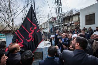 Fourth: The activities were concluded by raising he flag og the holy shrine of Imam al-Hadi and Imam al-'Askari (peace be upon both of them) in the "Jumak" mosque, which means in Arabic "The land of water sources."