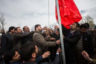 Third: After performing Friday prayer, the delegations of the holy shrine and the crowds of the believers went to raise the flag of the shrine's dome of Aba al-Fadl al-Abbas (peace be upon him) in the courtyard of the Great Masjid of Skardu, and the head of the delegation of the al-Abbas's (p) holy shrine; Sheikh Adel al-Wakeel has delivered a speech for the occasion.