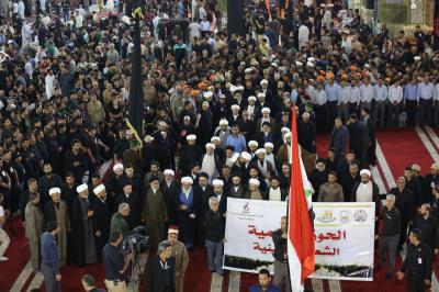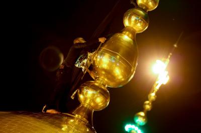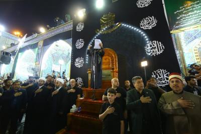 Abgeschlossen wurde das Ereignis mit dem Austausch der Flaggen und das unter den Rufen: "Zu deinen Diensten, o Vergifteter" und der Teilnahme des husseinischen Klagesängers Bassim al Karbalai.