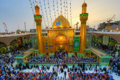 Et pour ce, la foule des fidèles ont commémoré au sanctuaire saint de l’Imam Ali (p) cette occasion bénie, alors que le sanctuaire saint était plein, les foules venues de l’intérieur et extérieur de l’Irak se sont regroupé sur les places avoisinantes du sanctuaire saint afin de montrer leurs amours au prophète et à l’Imam Ali et leurs fidélités. Le personnel du sanctuaire saint de l’Imam Ali (p) a mis tout en place afin de fournir l’eau, les repas, les soins et le transport pour le meilleur service des visiteurs dans le sanctuaire, à côté et sur les routes qui mènent au sanctuaire.