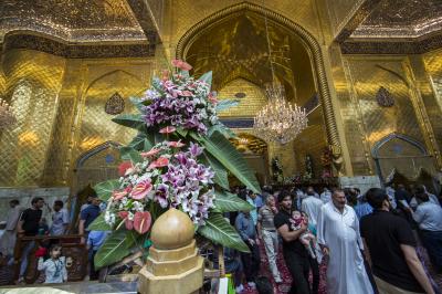Zu diesem Anlass wurde der heilige Hof von Abu Fadl al Abbas (as) von innen und außen dekoriert. Es wurden verschiedene Blumen und Rosen in- und außerhalb des Hofes, sowie auf dem heiligen Schrein verteilt. Auch beschmückt wurden die beiden Minaretten und Wände des Hofes mit bunten Lichtern, und der Eingang der Stätte aus dem Qibla-Tor mit Leuchtständen rechts und links. Dies alles erfolgte nach einem Plan, der diesen Feierlichkeiten und Anlässen entspricht.