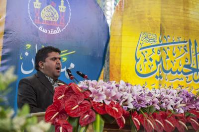 Alors le poète Mohamad al-Hirzi a chanté un de ses poèmes sur les vertus d'Ahl al-Bayt (la paix soit sur eux) en particulier Imam al-Hussein et son frère Aba al-Fadl al-Abbas (la paix soit sur les deux).