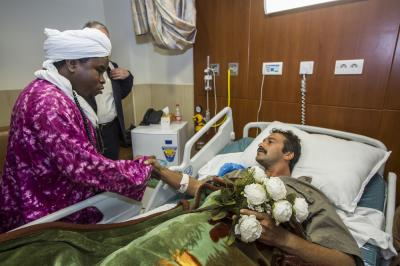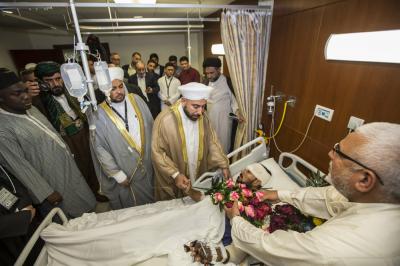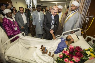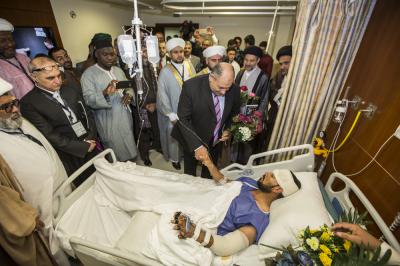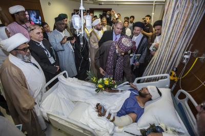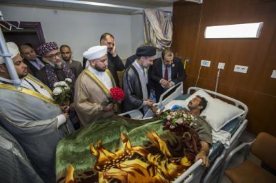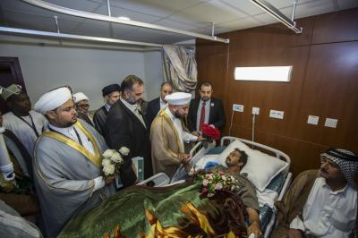 الوفد الزائر كان متنوّعاً ومن أغلب قارّات العالم ومن مذاهب وأطياف عدّة، وكانت له جولة على بعض هؤلاء الجرحى، وبعد الاطّلاع على حالتهم ابتهل أعضاء الوفد الى الله تعالى العليّ القدير أن يمنّ عليهم بالصحّة والعافية، مثمّنين لهم في الوقت نفسه هذه الروح البطوليّة العالية التي تحلّوا بها وهم يقفون كالطود الشامخ ضدّ عصابات داعش الإرهابيّة.