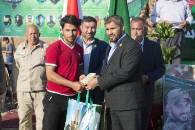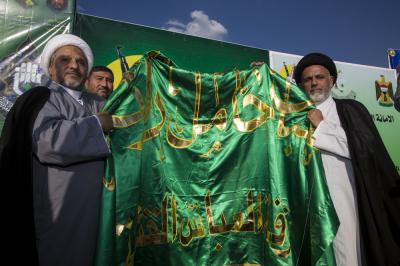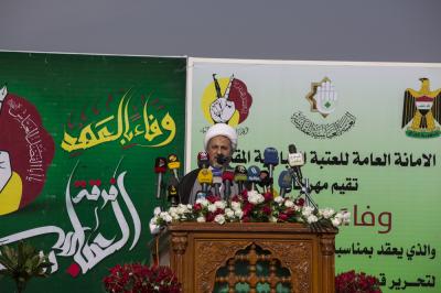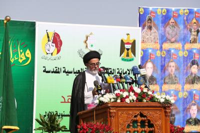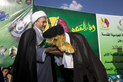 Sheikh Kamal al-Karbala'i has then delivered the flag of the al-Abbas's (p) holy shrine to the people of al-Bashir village, received on their behalf by the representative of the supreme religious authority Sayed Qunbur al-Musawi. The ceremony was concluded by honoring the families of the martyrs who have fallen in the liberation battles of the village.