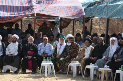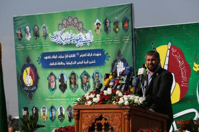 The ceremony has begun with the recitation of verses of the holy Quran and reading Surat al-Fatiha in memory of the martyrs of Iraq, followed by the national anthem and the hymn of the al-Abbas's (p) holy shrine "Tune of pride", followed by a welcoming word of al-Bashir people delivered by the representative of the supreme religious authority in Kirkuk Sayed Mounir al-Musawi followed by the word of the al-Abbas's (p) holy shrine delivered by sheikh Kamal al-Karbala'i and then the word of the General Supervisor of the al-Abbas's (p) fighting squad Mr. Maitham al-Zaidi.