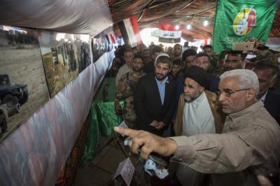 Finally, the attendees then went to the opening of the exhibition of the spoils of the al-Abbas's (p) fighting squad they got during the battles they fought in the village of Bashir and other battles.