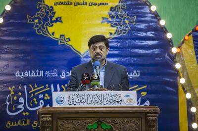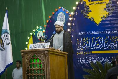 The opening ceremony of the festival, which was held with the presence of the Senior Official of the al-Abbas's (p) holy shrine and the secretaries of the two holy shrines of Imam al-Hussayn and of al-Abbas (peace be upon both of them) and a number of officials of the holy shrines, in addition to a wide collection of religious, cultural and academic figures, has begun by the recitation of verses from the Holy Quran and reading Al-Fatihah in memory of the martyrs of Iraq, followed by the word of the organizing foundation of the festival, which was delivered by Sheikh 'Aqeel Ali Al-Zubaidi.
