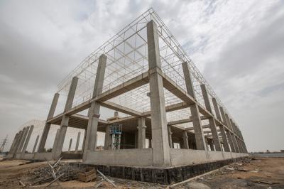 وتابع الصائغ: "المشروع عبارة عن قسمين، الأوّل: ورشة من طابقين تبلغ مساحة الطابق الواحد (3000م2) بعرض (30متراً) وطول (100متر) تنفّذ بطريقةٍ حديثة وبفضاء مفتوح، والثاني مخزنٌ يُقام على مساحة (2,500م2) ويبلغ ارتفاعه (10,15أمتار) بعُرْض (25متراً) وطول (100متر)، وقد روعيت في تنفيذه جميعُ الأمور الفنّية والهندسيّة الخاصّة بإنشاء مثل هكذا مخازن من ناحية الأُسس وربط الأعمدة الخرسانيّة أو تغليف المخزن من الخارج وغيرها من الأمور التي تتلاءم مع طرق استخدامه".