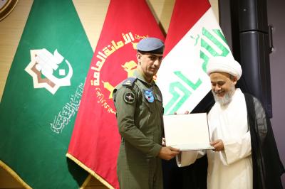 Er sagte abschließend: „Der Dank gebührt der weisen Autorität für ihre Unterstüzung der irakischen Armee-Luftfahrt, für die ununterbrochene Unterstützung auf dem Kampffeld und an den Fronten und für die Besuche in den militärischen Sektoren. Der Dank gilt auch der heiligen abbasitischen Stätte und ihren Leitern für diese Geste und diese Ehrung.“