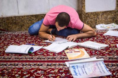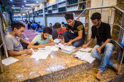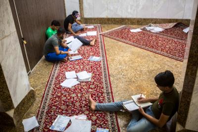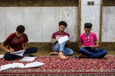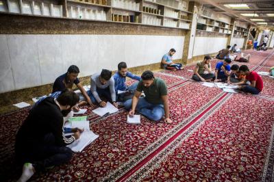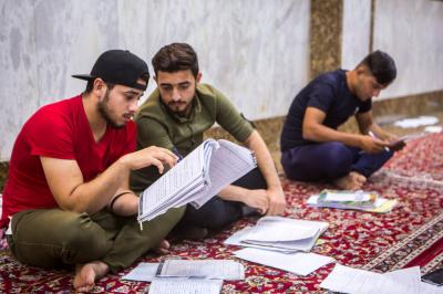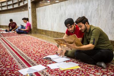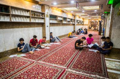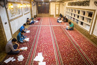 The al-Abbas's (p) holy shrine receives daily dozens of students from the final stages of the preparatory school in order to study and prepare for the final examinations, which began this month, which is a hot month with the temperatures rising above 50 degrees Celsius with almost complete interruption of electricity. These factors in addition to psychological factors such as the calm, peace and the desire to prepare the exams next to the sanctuary of Aba al-Fadl al-Abbas (peace be upon him), prompt them to come to the holy shrine, whether they are students living close to the holy shrine or coming from far away outside the province center.