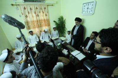 Begleitet wurde der legitime Leiter in diesem Besuch vom Generalsekretär der heiligen Stätte Sayed Muhamad al-Ashaiqir, einer Anzahl an Vorstandsmitgliedern und Abteilungsleiten, sowie vom Direktor des al-Koran al-Kareem Instituts Sheikh Jawad al-Nasrawi, dem Direktor des Zentrums für Koranprojekte Sayed Hassanein alHelow und vom geschäftsführenden Direktor des Projekts Herrn Ali al-Bayati. Der Besuch umfasste außerdem einen Rundgang durch die Unterrichtsräume. Dort wurde den Besuchern die Methode erklärt, die man zur Erstellung der Programme des Projektes anwendet.
