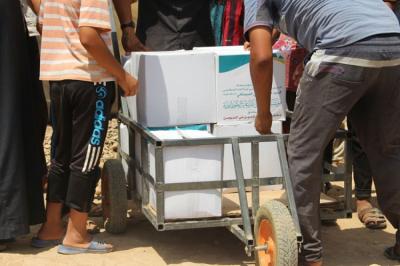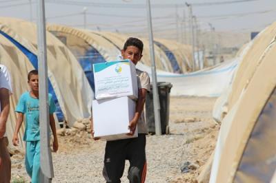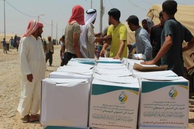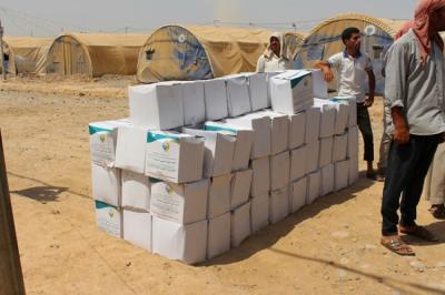 La première étape était le camp (Al Jid’a) n° (5) situé au sud de (Qayara) dans la province de Ninive, où cinq milles paniers alimentaires ont été distribué, et chaque panier contient huit produits alimentaires en collaboration avec la fondation Al-Ayne (l’œil) affilié au bureau de l’autorité religieuse suprême.