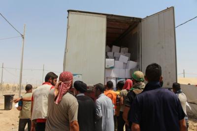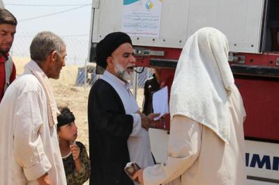 Le comité de secours du bureau de con éminence Sayeed Al-Sistani (LV) travaille sur le soulagement des réfugiés de Mossoul avec de l’aide alimentaires, et ce dans le cadre de son programme de soutien et secours aux réfugiés et avec des tonnes de nourriture afin de contribuer à atténuer leurs souffrances actuelles, et sous les directives de son éminence et en une semaine deux convois d’aide arrivent aux réfugiés malgré les conditions météorologiques et de sécurité, en fonction des moyens disponible et le calendrier et planning mis en place pour cet effet.