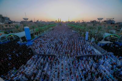 Baada ya makundi makubwa ya waumini kutoka ndani na nje ya Iraq ufurika katika aridhi hii takatifu na kufanya ibada maalumu za usiku wa Arafa na mchana wake, wamehitimisha kwa kuswali Iddi na kuliombea taifa amani na raia wake pamoja na kuliombea ushindi jeshi la serikali pamoja na Hashdi Sha’abi.