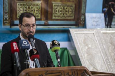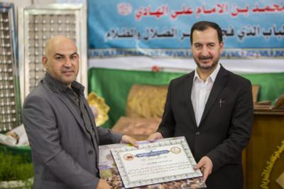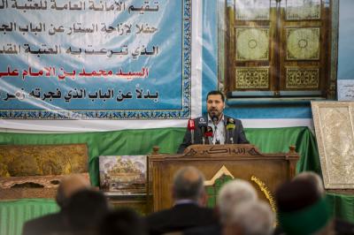 Daraufhin sprach der Sondersekretär der Stätte von Sayed Muhamad (as), Hajj Abbas Abed Ali al-Baldawi. In seiner Rede bedankte er sich für die Bemühungen der heiligen abbasitischen Stätte, die für diese Arbeit geleistet worden sind. Diese mache stolz, denn die irakischen Hände seien dazu imstande, das Unmögliche möglich zu machen und sie setzen Projekte um, die hohe Qualität und Präzision benötigen. Es gäbe keine Tür, die mit dieser zu vergleichen wäre, denn sie sei einzgartig in ihrer Dekoration, den Gravuren, den heiligen Versen und der Art des Holzes. Die heilige abbasitische Stätte habe in der Stätte Sayed Muhamads (as) bereits viele Abdrücke hinterlassen, wie durch ihre Arbeit an den Minaretten der Stätte. Außerdem werde es noch weitere Projekte geben.