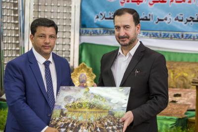 Nach der Eröffnung mit einigen Versen aus dem heiligen Koran hielt der Generalsekretär der heiligen abbasitischen Stätte, Herrn Muhamad al-Ashaiqir eine Rede, in der es hieß: "Die Herstellung der Tür "Al-Hamed" für die Stätte von Sayed Muhamad ibn Ali al-Hadi erfolgte unter dem Motto "Made in Iraq" und zwar durch die Mitarbeiter der heiligen abbasitischen Stätte. Dies ist ein weiterer Beweis für die Fähigkeit der Iraker kreativ zu sein, wenn ihnen die notwendige Arbeitsgrundlage zur Verfügung gestellt wird."