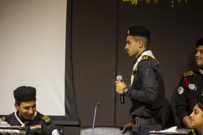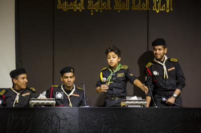 Im Anschluss sprach stellvertretend für den Alkafeel Pfadfinderverein Herrn Dr. Mazen al-Kanani, welcher sagte: "Ein wichtiger Punkt, der bei der Bildung eines Menschen betont werden muss ist, sich auf den inneren Bau zu konzentrieren, seine Fähigkeiten weiterzuentwickeln, seine Talente zu fördern und seine Energie von Innen nach Außen zu bringen und das erfolgt in den Pfadfinderlagern auf Ebene der Provinz und durch Förderkurse in verschiedenen Bereichen. Schließlich ist der Bau des Menschen wichtiger als der Bau von Wänden und in dieser Zeit, die ich mit diesen Jugendlichen verbracht habe, konnte ich in ihnen die Führer der Zukunft sehen."