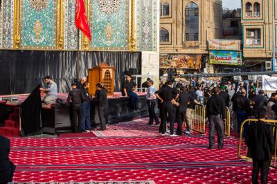 Muharrem-i Haram ayının ve Huseynî hüzünler mevsiminin başladığını ilan edecek olan Hz.İmam Huseyn’in ve Kardeşi Hz.Ebulfazl Abbas’ın (Allah'ın selâmı üzerlerine olsun) Mukaddes Ziyaretgâhlarının Kubbe-i Şerîfelerinin mubarek sancaklarının değiştirileceği törene sayılı saatler kaldı. Resûlullah’ın (Allah-u Teâlâ O’na ve Pâk Ehlibeyti’ne salât eylesin) torunu Hz.İmam Huseyn’in, hane halkının ve dostlarının (Allah'ın selâmı hepsine olsun) şehîd olduğu hatıranın anılmaya başlanacağı bu gecenin özel hazırlıkları kapsamında Mukaddes Hz.Abbas (Allah'ın selâmı üzerine olsun) Türbesi tarafından özel platform kuruldu. Hz.Ebulfazl Abbas’ın (Allah'ın selâmı üzerine olsun) Mubarek Ziyaretgâhı’nın Kıble Kapısı’na bakan ve özel tasarlanan platform için birçok yeni dekorasyon çalışması gerçekleştirildi.