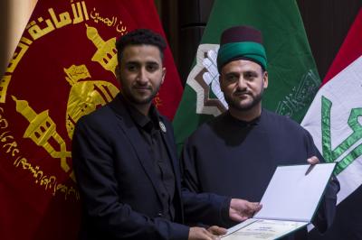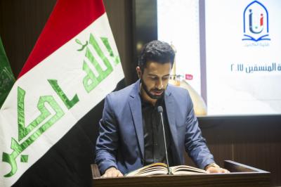 حفل الختام أقيم على قاعة الامام القاسم بن الامام الحسن (عليهما السلام) في العتبة العباسية المقدسة، واستهل بتلاوة معطرة من كتاب الله العزيز، وبعدها قُرِئت سورة الفاتحة ترحماً على شهداء العراق كافة.