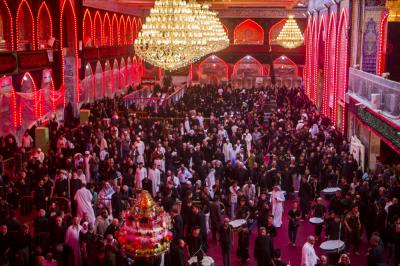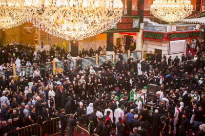 The roads from the entrances of the holy city to the two holy shrines have witnessed intense crowding, as the numbers of the visitors are continuously increasing amid the spread of the service processions erected to serve the mourners of the tragedy of Ahl al-Bayt (peace be upon them), in addition to the condolences processions that are reviving the Ashura rituals, filled with the love and loyalty to Ahl al-Bayt (peace be upon them), in appreciation for their pioneering role in the consolidation of the supreme faith and the Jihadist approach to combating the immorality and tyranny.