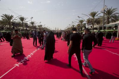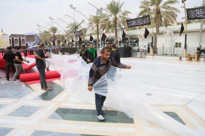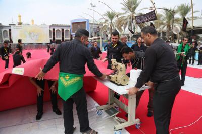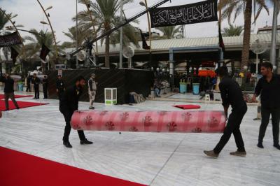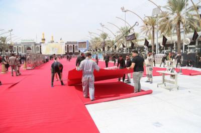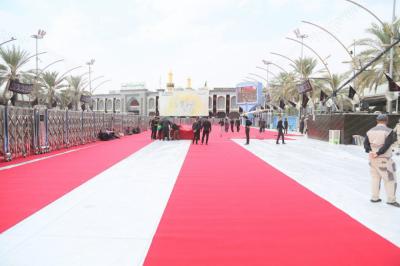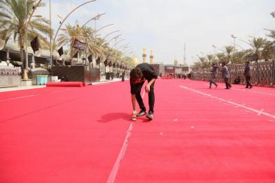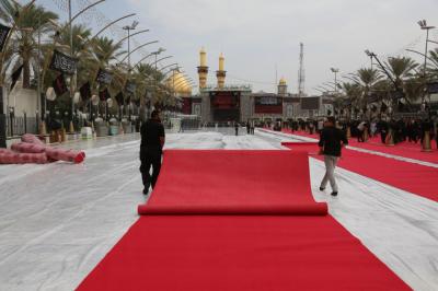 Im Rahmen der Vorbereitungen auf den Empfang der Zeremonien Aschuras hat die Abteilung „Bein al Haramein“ der heiligen husseinitischen und abbasitischen Stätte, als Teil der ihr auferlegten Dienstleistungsarbeiten, das Gebiet zwischen den beiden heiligen Stätten von Imam Hussein und Abu Fadl al Abbas (As) mit einem roten Teppich ausgestattet.