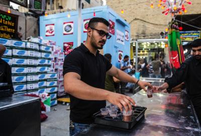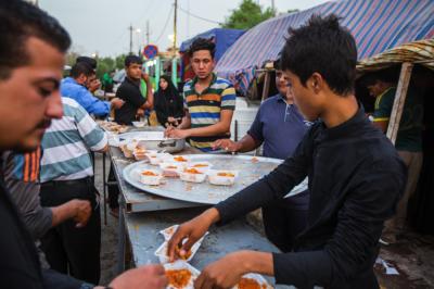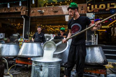 Und so eilen bereits seit dem erten Tag von Muharram Groß und Klein, Kinder und Frauen, um die ehre zu erhalten, sich in den Dienst der Besucher zu stellen und ihnen Essen, Trinken, Unterkünfte und weitere Dienstleistungen bereitzustellen, die bis zum 10. und teilweise sogar bis zum 13. des Monats Muharram andauern.