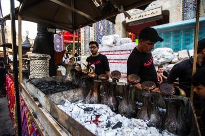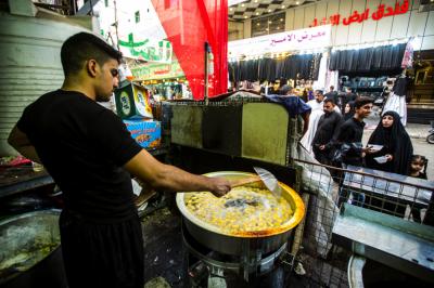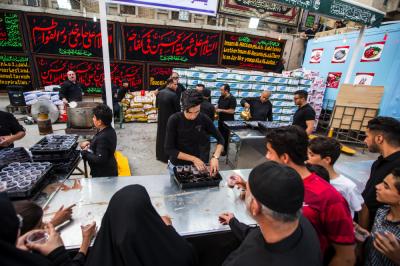 Die Konvois und Gruppen schöpfen all ihre materiellen und immateriellen Kräfte, um den Besuchern damit zu dienen. In Schwarz gekleidet sieht man sie damit beschäftigt, Essen vorzubereiten und andere kostenfreie Dienstleistungen zu sichern. Mit dem Lohn dieser Arbeit suchen sie einzig und allein die Nähe und Zufriedenheit Allahs durch die Familie des Gesandten (saas) und das, als würden sie sagen: „Alles, was wir besitzen, ist eine Großzügigkeit von Abi Abdillah (As) und alles, was wir seinen Besuchern geben, ist sehr gering angesichts dessen, was er für den Islam und die gesamte Menschheit getan hat. Der Dienst im Namen Imam Husseins (As) ist uns eine Ehre in der Diesseits und ein Schatz im Jenseits.“
