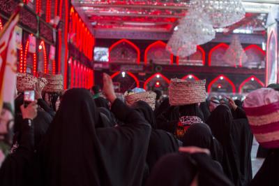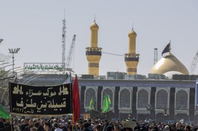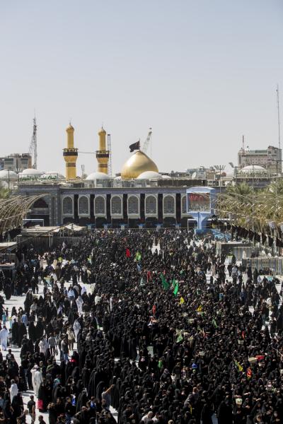 Le cortège passe ensuite par l’avenue Imam Al-Hussein (p), et continue jusqu’à son entrée au sanctuaire saint Al-Hussein (paix sur lui), puis la place entre les deux sanctuaires saints et se termine dans le sanctuaire saint Al-Abbas (p).